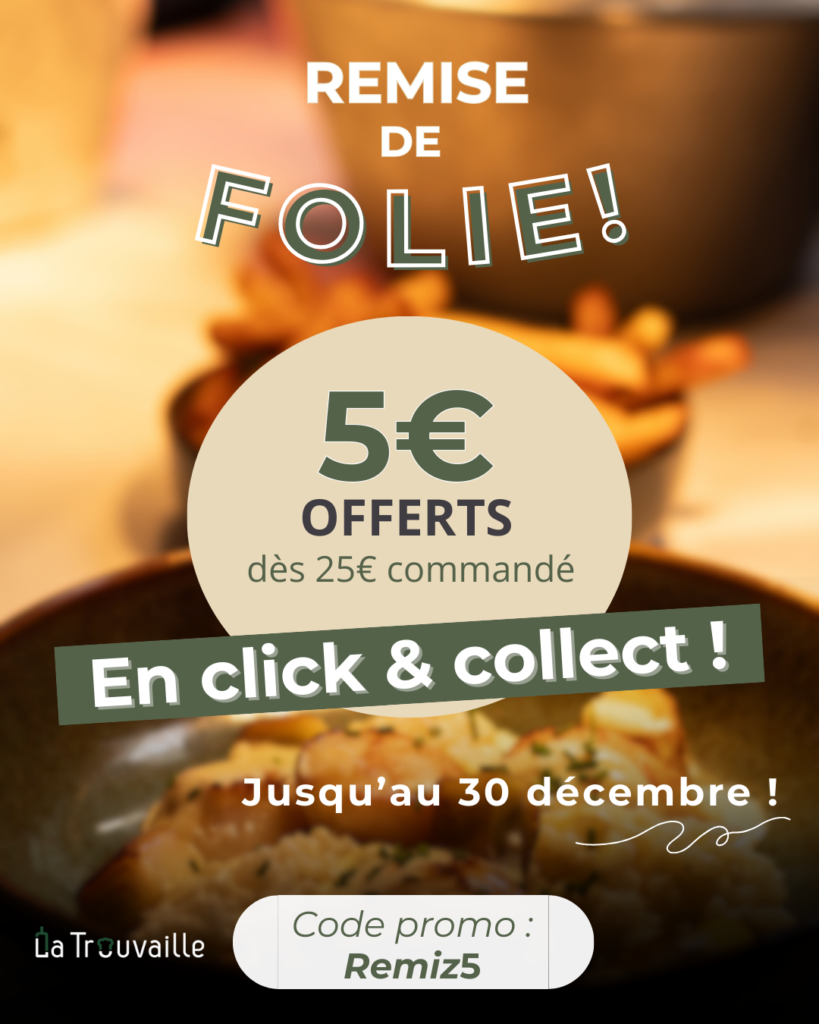 Ce mois-ci, entre les cadeaux et les imprévus, le porte-monnaie tire la langue… Heureusement, on vous aide un peu : 5€ offerts dès 25€ de commande, sur notre click & collect et jusqu’au 30 décembre. https://trouvailleblois.zelty-order.fr – Il vous suffit d’utiliser le code promo « Remiz5 ». Une petite trouvaille qui fait du bien ! #latrouvaille#commande#bonplan#restaurant#clickandcollect#siteinternet#blois#brasserie#loiretcher#décembre#codepromo#reduction#offre#promo