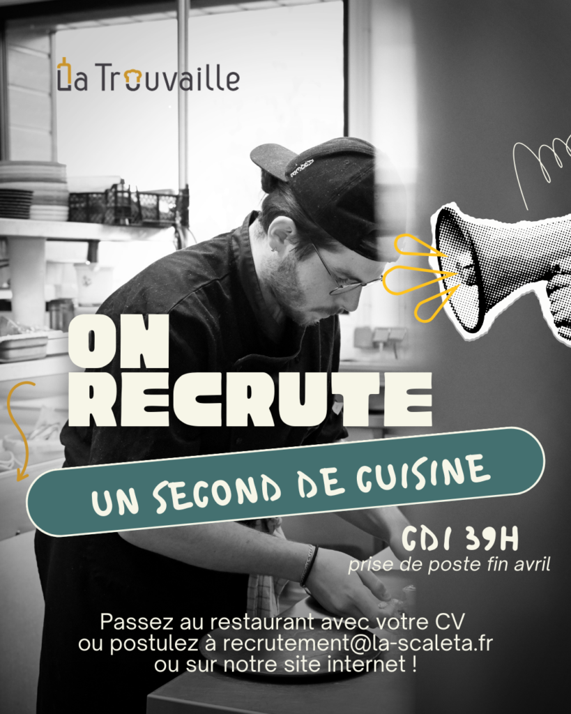 Postulez en ligne ou présentez-vous directement au restaurant avec votre CV : 5 rue de la Chaîne, 41000 Blois. https://careers.flatchr.io/fr/company/lascaleta/vacancy/xlv0d9ak1vpdwelk-second-de-cuisine-h-f-a-la-trouvaille